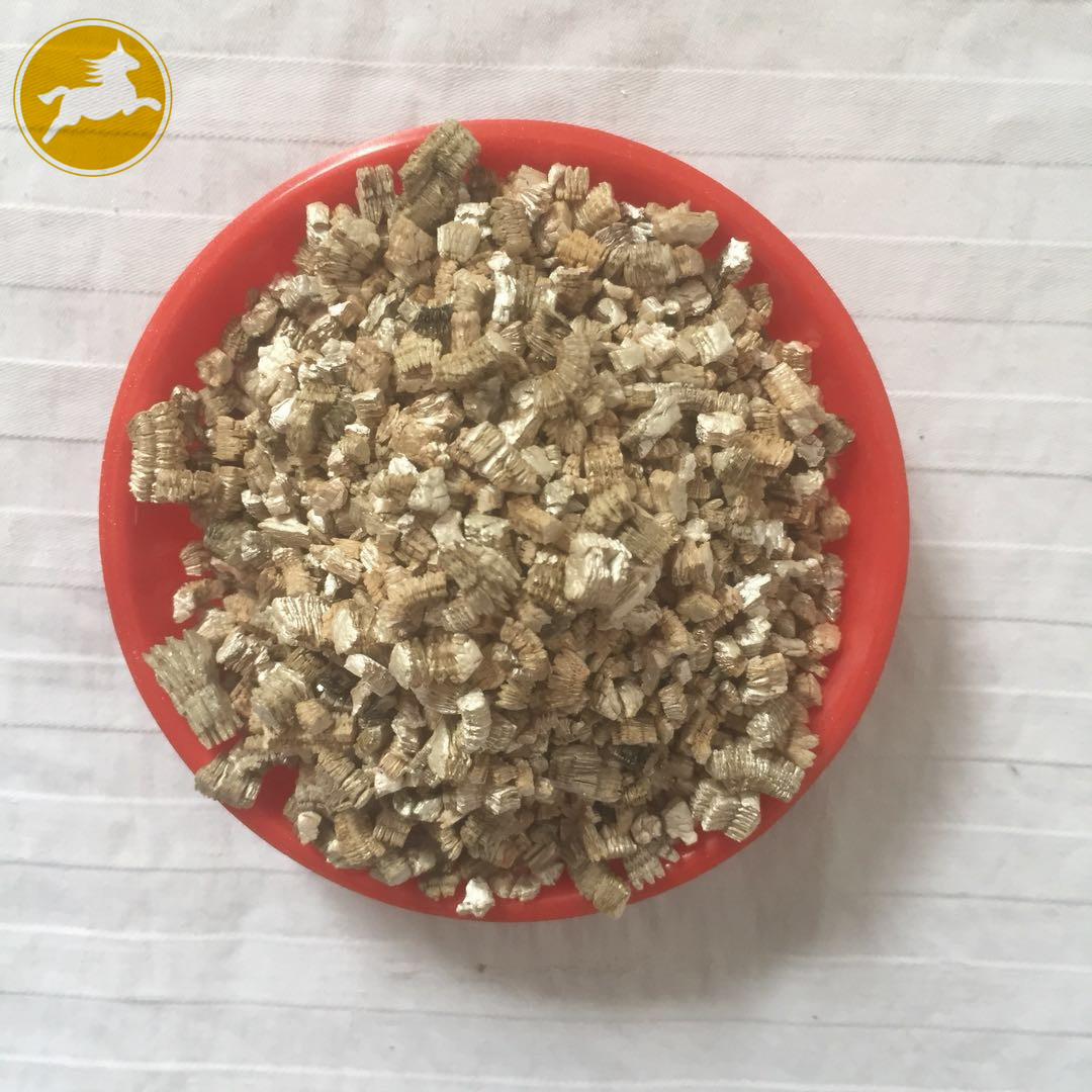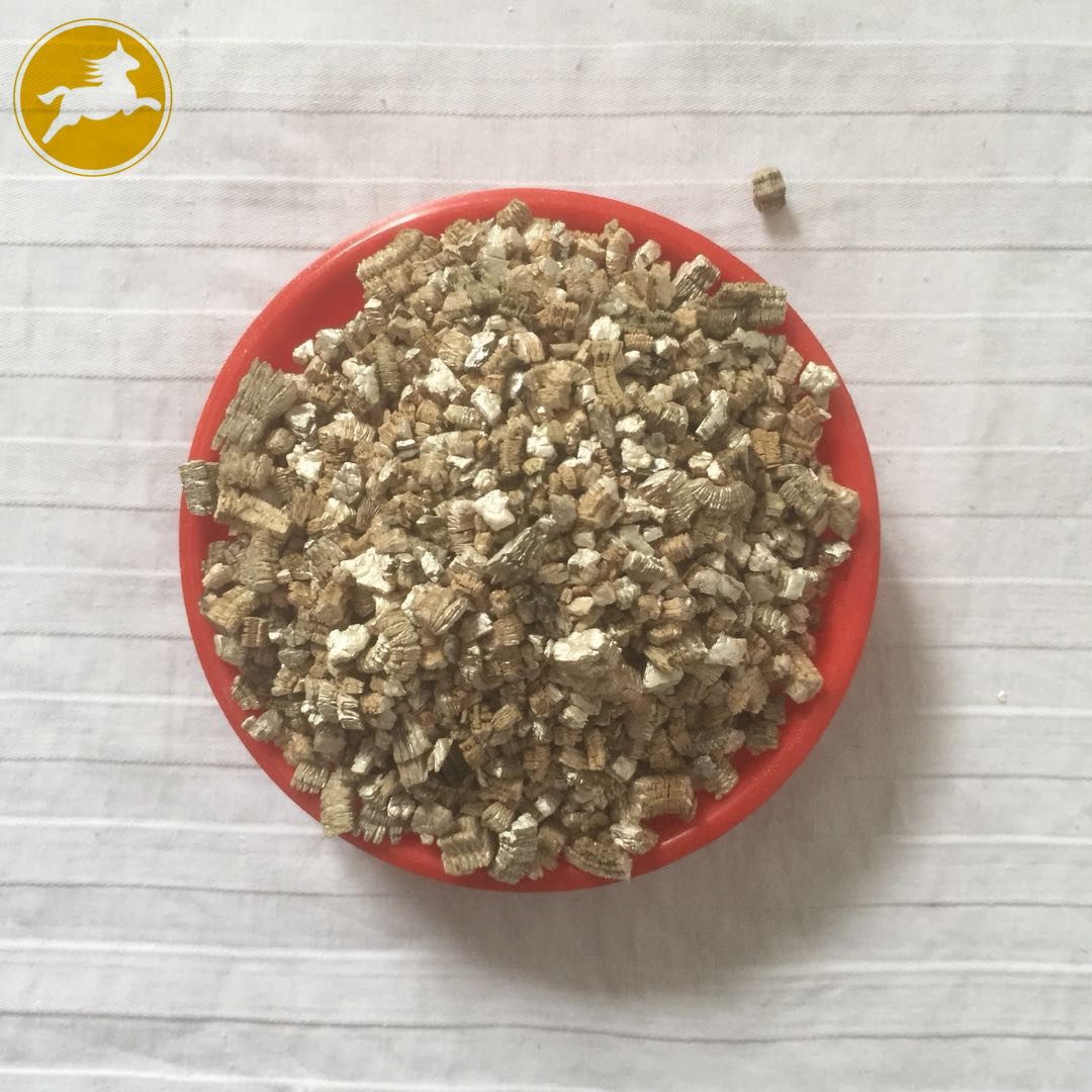 蛭石具有隔熱、耐凍、抗菌、防火、吸水、吸聲等優(yōu)異性能,在800~1000℃下焙燒0.5~1.0分鐘,體積可迅速增大8~15倍,高達(dá)30倍。膨脹后的比重50-200kg/m3,顏色變?yōu)榻瘘S或銀白色,生成一種質(zhì)地疏松的膨脹蛭石。